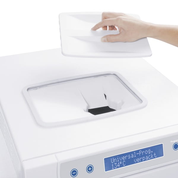 Prístroj má vnútornú pamäť až na 40 programových cyklov, čo umožňuje presnú dokumentáciu vykonaných sterilizácií. Súčasťou balenia je držiak zásobníka a kvalita spracovania na najvyššej úrovni zaručuje, že výrobok je "Made in Germany".