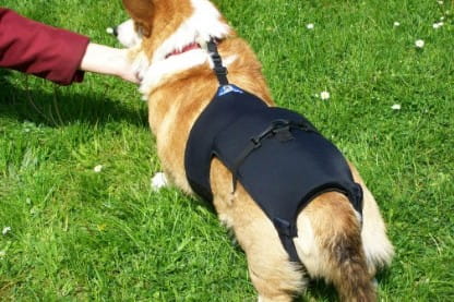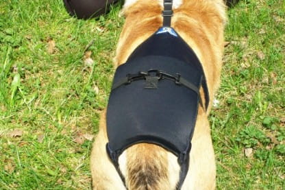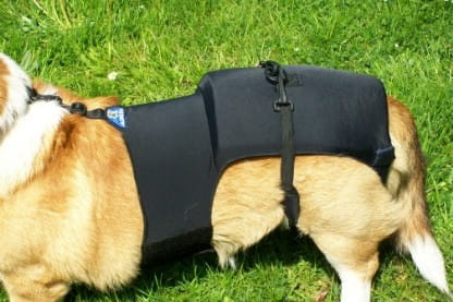 Zapínanie na suchý zips pod bruchom. Celok sa sťahuje mäkkými popruhmi v podpazuší, ktoré sa zapínajú vzadu. Okraj korzetu sa upevňuje na postroj alebo obojok psa.