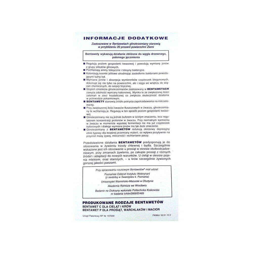 Bentawet P je prírodný liek na hnačku prasiatok, ktorý obsahuje montmorillonit, oxid zinočnatý, byliny a chuťové a aromatické prísady. Tento výrobok sa môže podávať preventívne pred odstavom aj po odstavení prasiatok.