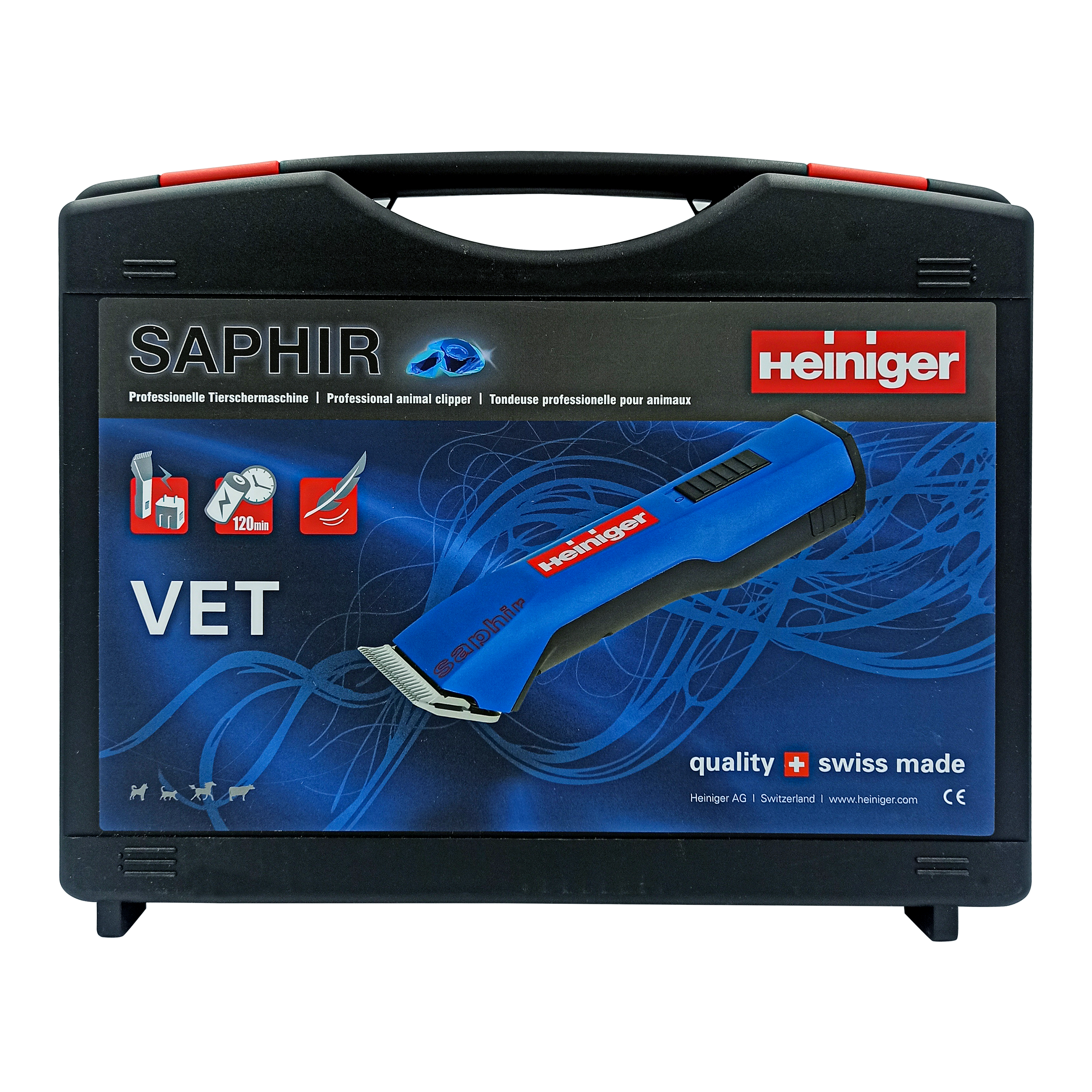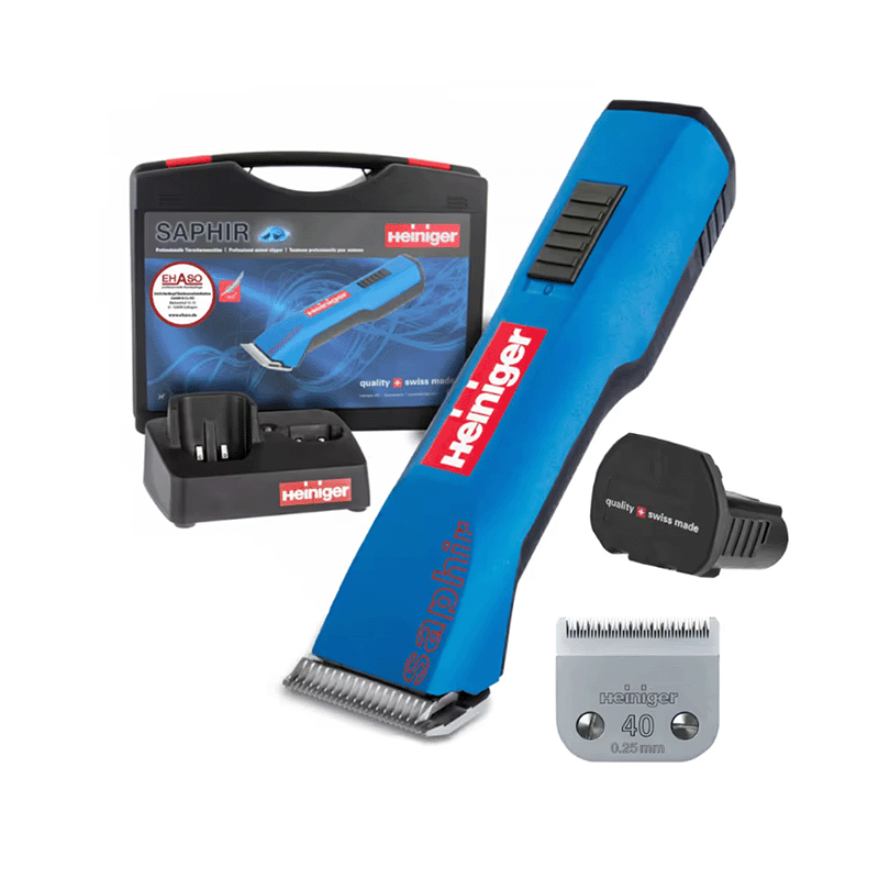 Akumulátorový holiaci strojček Heiniger Saphir VET je plne profesionálny prístroj na strihanie srsti zvierat. Vďaka svojim parametrom je najlepším dostupným akumulátorovým zastrihávačom na súčasnom trhu. Vo vnútri strojčeka sa nachádza zodpovedajúca čepeľ číslo 40 (0,25 milimetra). Poskytuje naozaj dôkladné oholenie, preto ho často používajú veterinári vykonávajúci chirurgické zákroky. Samozrejme, takúto čepeľ možno použiť aj na bežné strihanie.