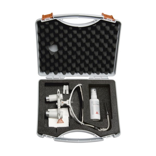 Súčasťou lupy sú ochranné okuláre, 2 sterilizovateľné otočné páčky, upevňovací popruh, čistiaca kvapalina, čistiaca handrička a puzdro na prenášanie. Tieto ďalšie položky poskytujú kompletnú sadu príslušenstva, ktoré môžete potrebovať pri používaní binokulárnej lupy HEINE HRP.
