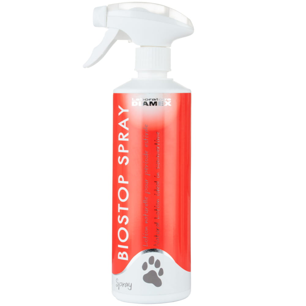 Diamex BioStop Spray 500 ml je prípravok na ochranu domácich zvierat, ktorý obsahuje esenciálne oleje a bol vyvinutý na účinnú ochranu proti hmyzu.