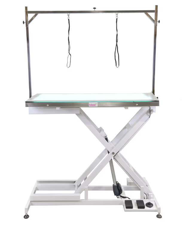 • Nastavenie výšky: Pohodlne nastaviteľná pomocou nožných pedálov od 26,5 cm do 105 cm, čo vám umožní pracovať so psami všetkých veľkostí - od najmenších až po najväčších.