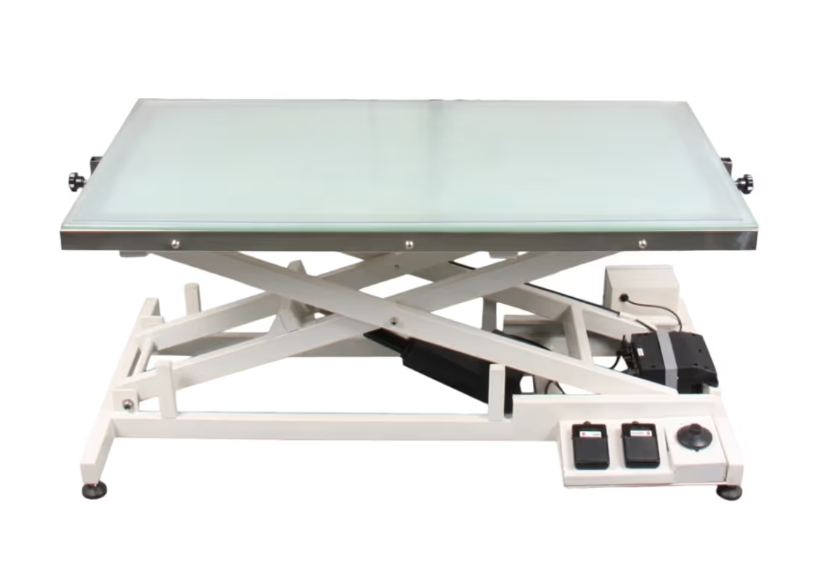 • Podsvietenásklenená doska: rozmery 120 x 65 cm, osvetlená vysokokvalitným LED osvetlením vyrobeným na zákazku v Nemecku, so životnosťou až 40 000 hodín. Stolová doska je pokrytá protišmykovou podložkou, ktorá zabezpečuje bezpečnosť a pohodlie vášho psa počas starostlivosti.