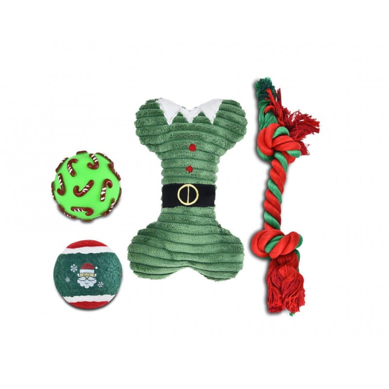 Predstavujeme vám rozkošnú vianočnú darčekovú súpravu hračiek pre psov, ktorá je navrhnutá tak, aby váš domáci miláčik bol počas čarovného sviatočného obdobia šťastný a aktívny. Súprava vedená v zelenej farbe poskytuje nielen zábavu, ale stará sa aj o zdravie ústnej dutiny a vytvára nezabudnuteľné chvíle zábavy pre vášho štvornohého priateľa.