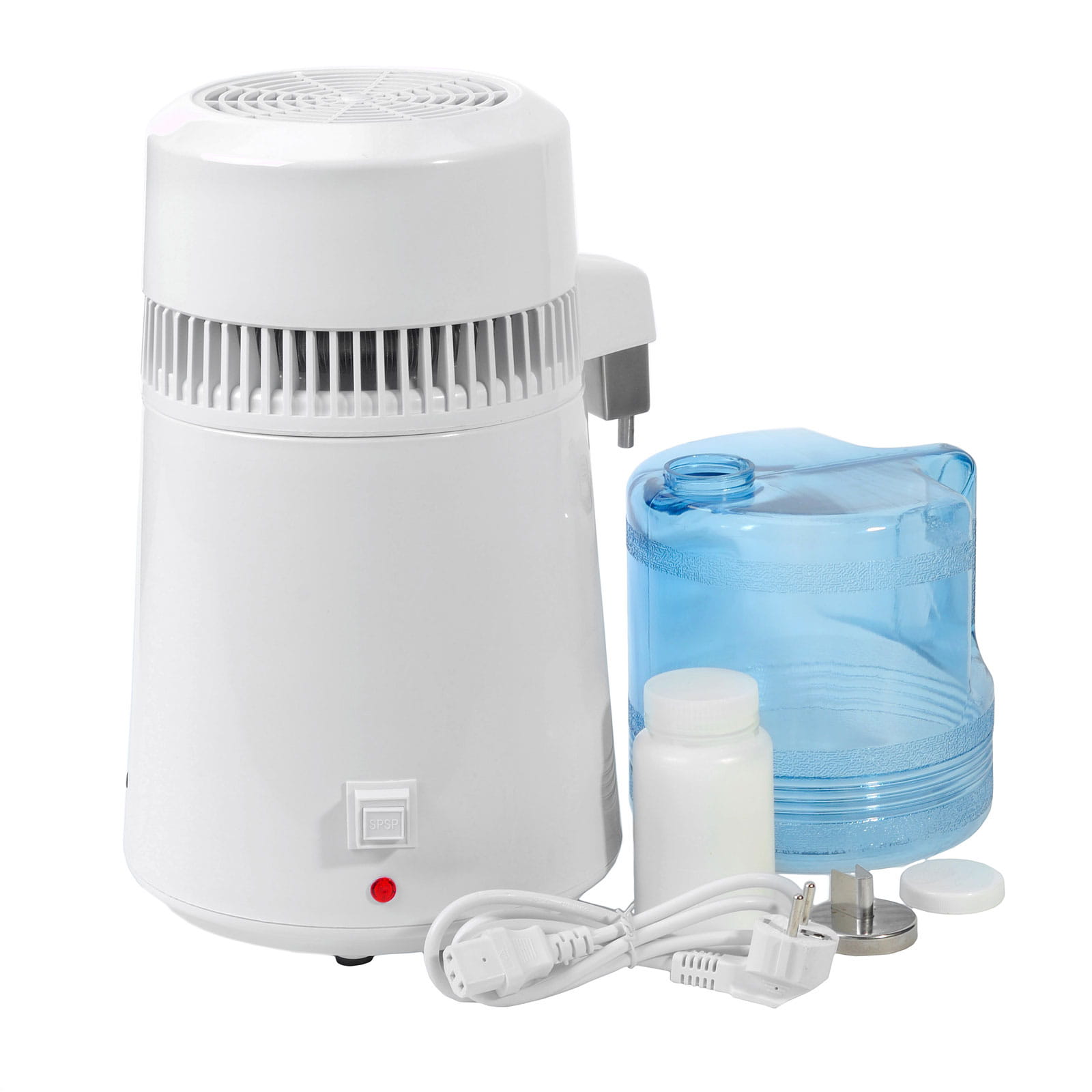 Odolná a efektívna konštrukcia: 4l nádoba na destilovanú vodu poskytuje dostatok vody na uspokojenie rôznych potrieb. Odolná konštrukcia oceľovej 4L destilačnej nádoby prispieva k spoľahlivému a dlhodobému výkonu prístroja.