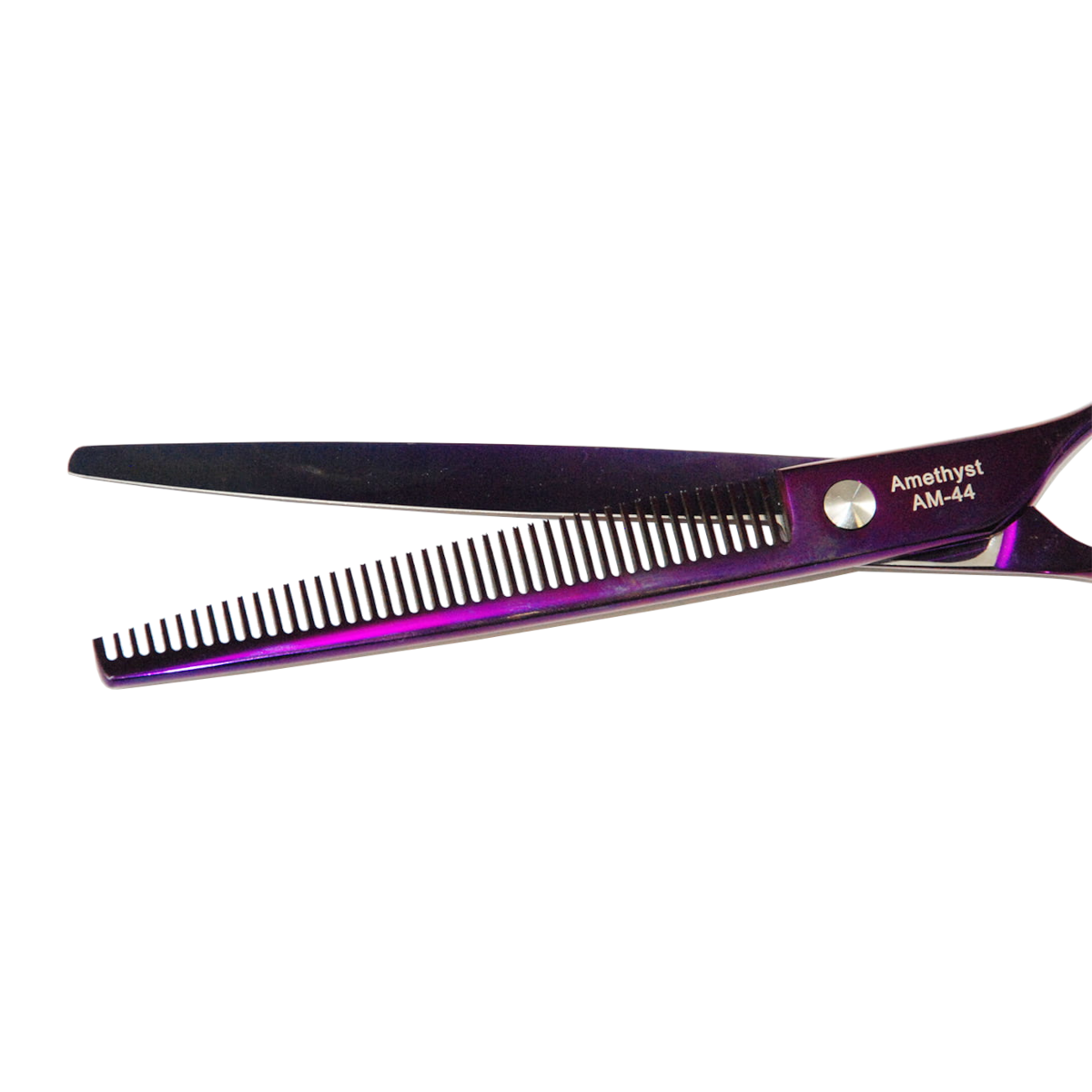 Nožnice AMETHYST majú 44 zubov a sú jednostranné (s opierkou na prsty).