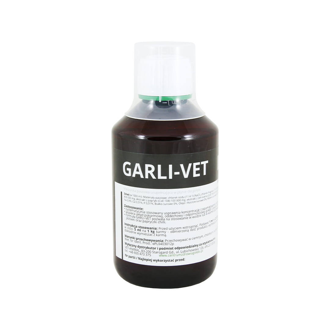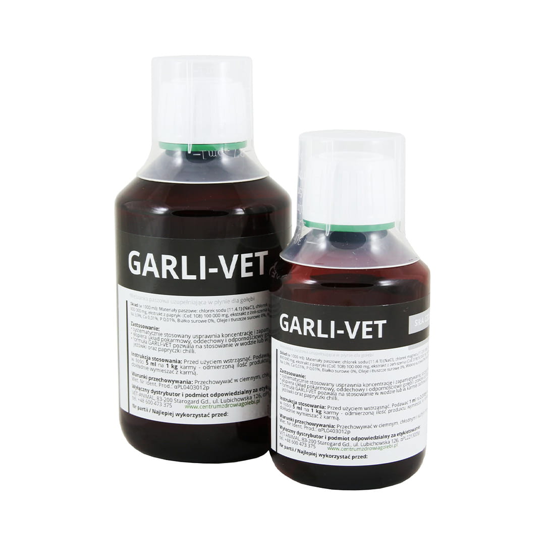 GARLI-VET je jedinečný prípravok, ktorý bol vyvinutý tak, aby vašim holubom a okrasnému vtáctvu poskytol podporu, ktorú potrebujú na to, aby sa tešili dobrému zdraviu a dosahovali čo najlepšie výsledky. Vďaka svojmu jedinečnému zloženiu obohatenému o cesnak, ženšen, ihličnan purpurový a chilli papričku (kapsaicín) je tento prípravok nevyhnutnosťou pre každého milovníka vtákov.