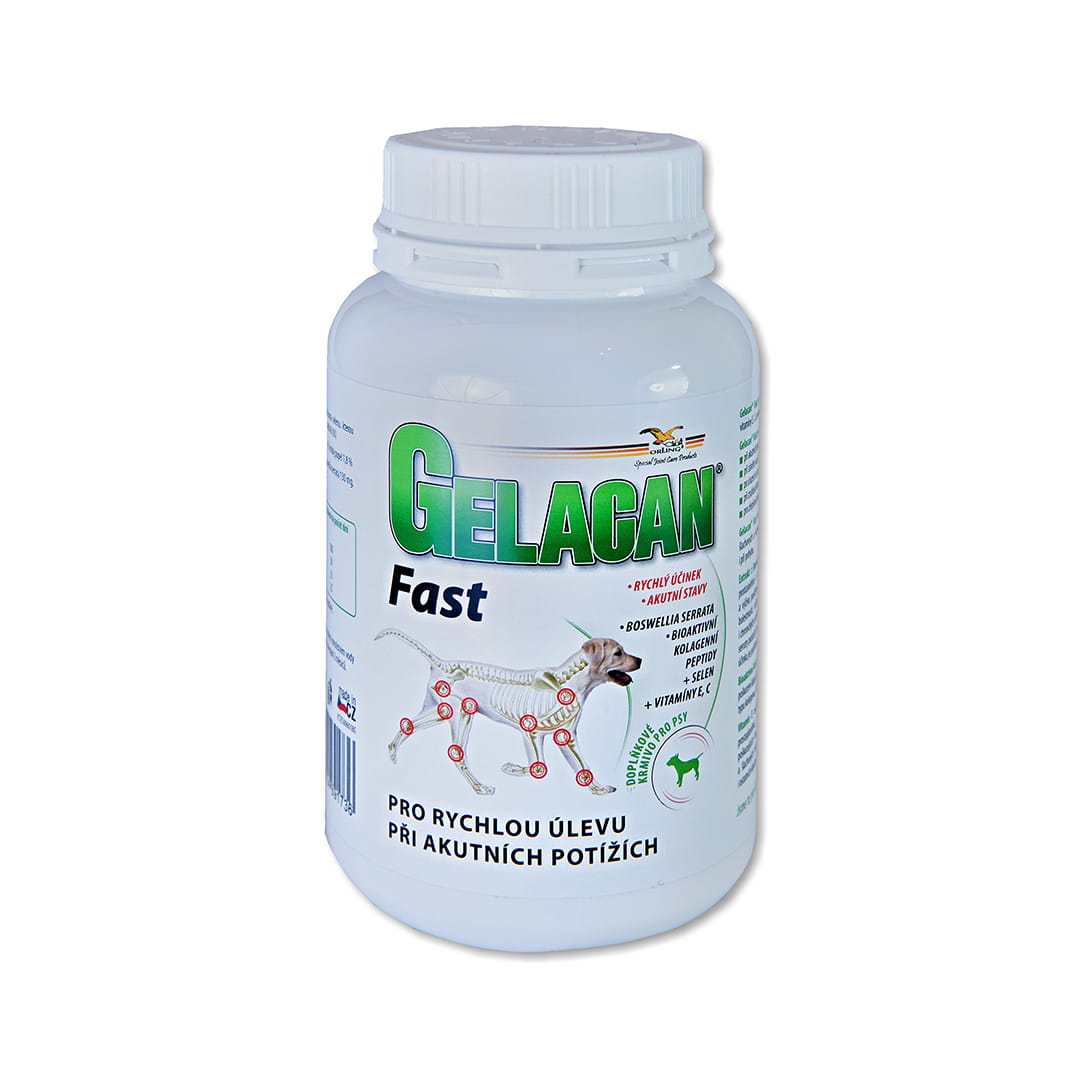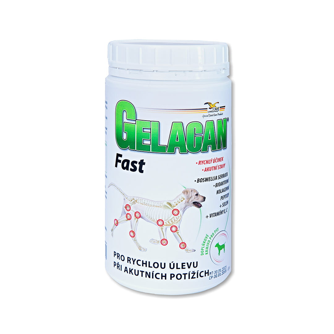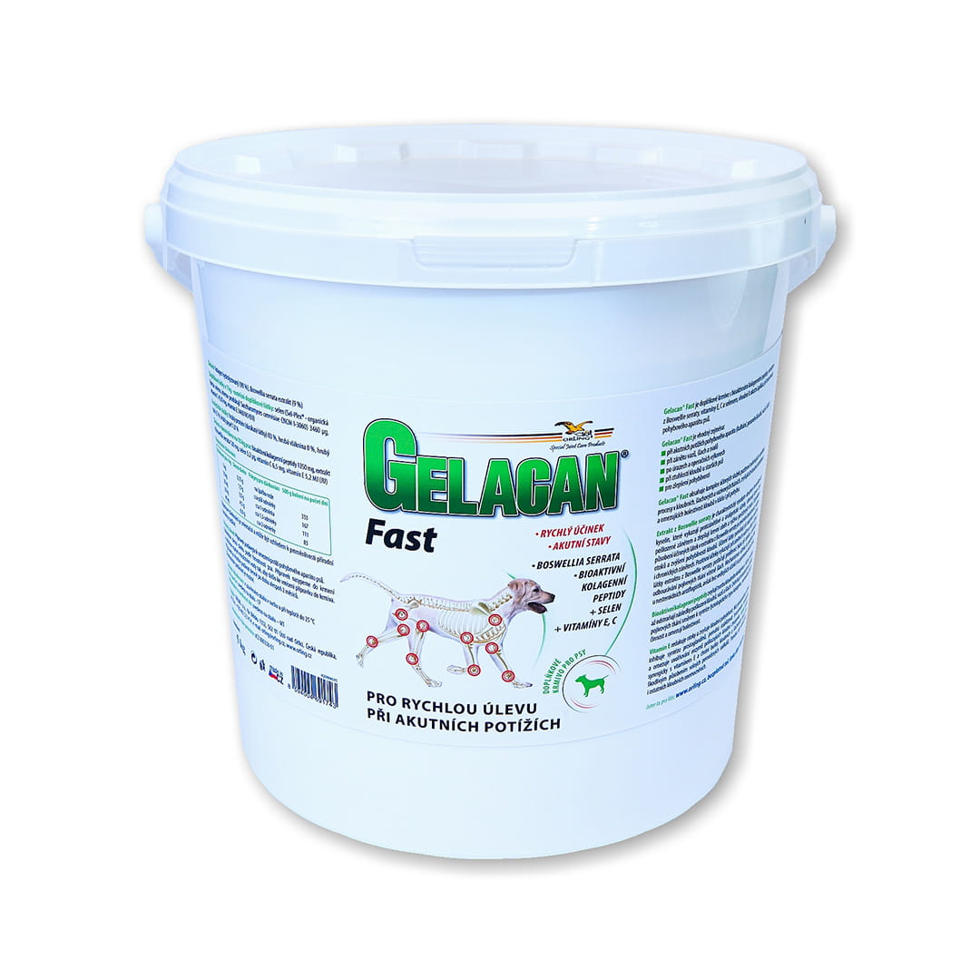Gelacan Fast je moderný výživový doplnok špeciálne vyvinutý pre psov trpiacich akútnymi bolestivými stavmi pohybového aparátu. Tento inovatívny produkt vyvinutý na zlepšenie zdravia kĺbov a úľavu od bolesti obsahuje presne vybraný súbor zložiek, ktoré majú pozitívny vplyv na proces hojenia zápalov kĺbov, väzov a šliach.