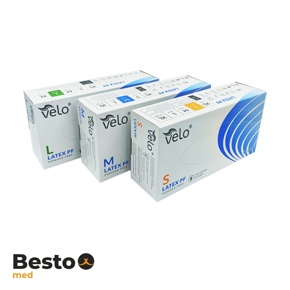 Latexové rukavice Velo sú ideálne na akékoľvek operácie. Sú tiež široko používané v diagnostike. Ich použitie v lekárskom (aj veterinárnom) prostredí je základom osobnej ochrany. Odolnosť proti prenikaniu chemikálií zaisťuje bezpečnosť počas rôznych druhov vykonávaných prác. Rukavice sú k dispozícii v rôznych veľkostiach a vďaka svojmu mimoriadne pružnému zloženiu dokonale sedia na ľavej aj pravej ruke. Rovnomerne zvlnený lem rukavíc a hladký, robustný povrch zaručujú spoľahlivú a účinnú ochranu. Vhodne navrhnuté balenie, ktoré obsahuje 100 rukavíc, sa bude hodiť ako súčasť skladovania výrobku.