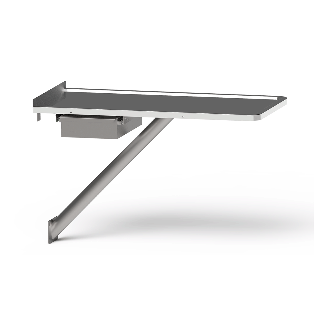 Stôl je pevne pripevnený k stene, takže ho môžete pevne umiestniť a mať istotu, že počas zákrokov zostane v stabilnej polohe.