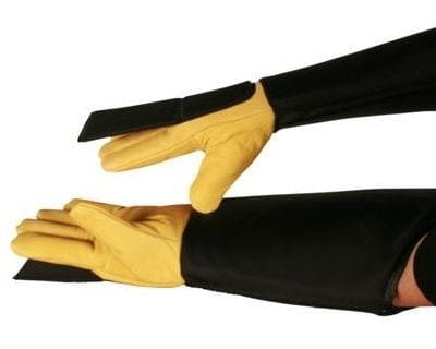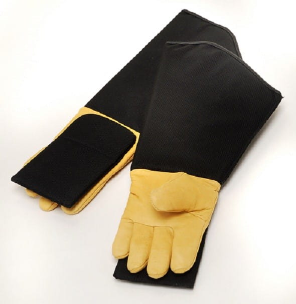Manžeta rukavíc je vyrobená z materiálu CORDURA a na každej strane vystužená špeciálnou (8 mm) tuhou vložkou proti uhryznutiu, čím dokonale chráni predlaktie pred uhryznutím,poškriabaním, poškriabaníma rozdrvením. Časť rukavíc na ochranu rúk je vyrobená z veľmi pevnej hovädzej kože, podšitá materiálom KEVLAR a na zvýšenie bezpečnosti vystlaná špeciálnou penou (2 mm ).