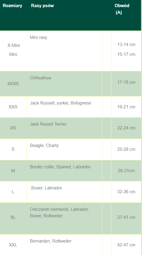 Na výber správnej veľkosti ortézy zmerajte obvod hornej časti zadnej labky (A). Meranie sa vykonáva krajčírskym metrom okolo stehna, tesne nad kolenom a v oblasti slabín. Ak máte pochybnosti medzi dvoma veľkosťami, odporúča sa vybrať menšiu.