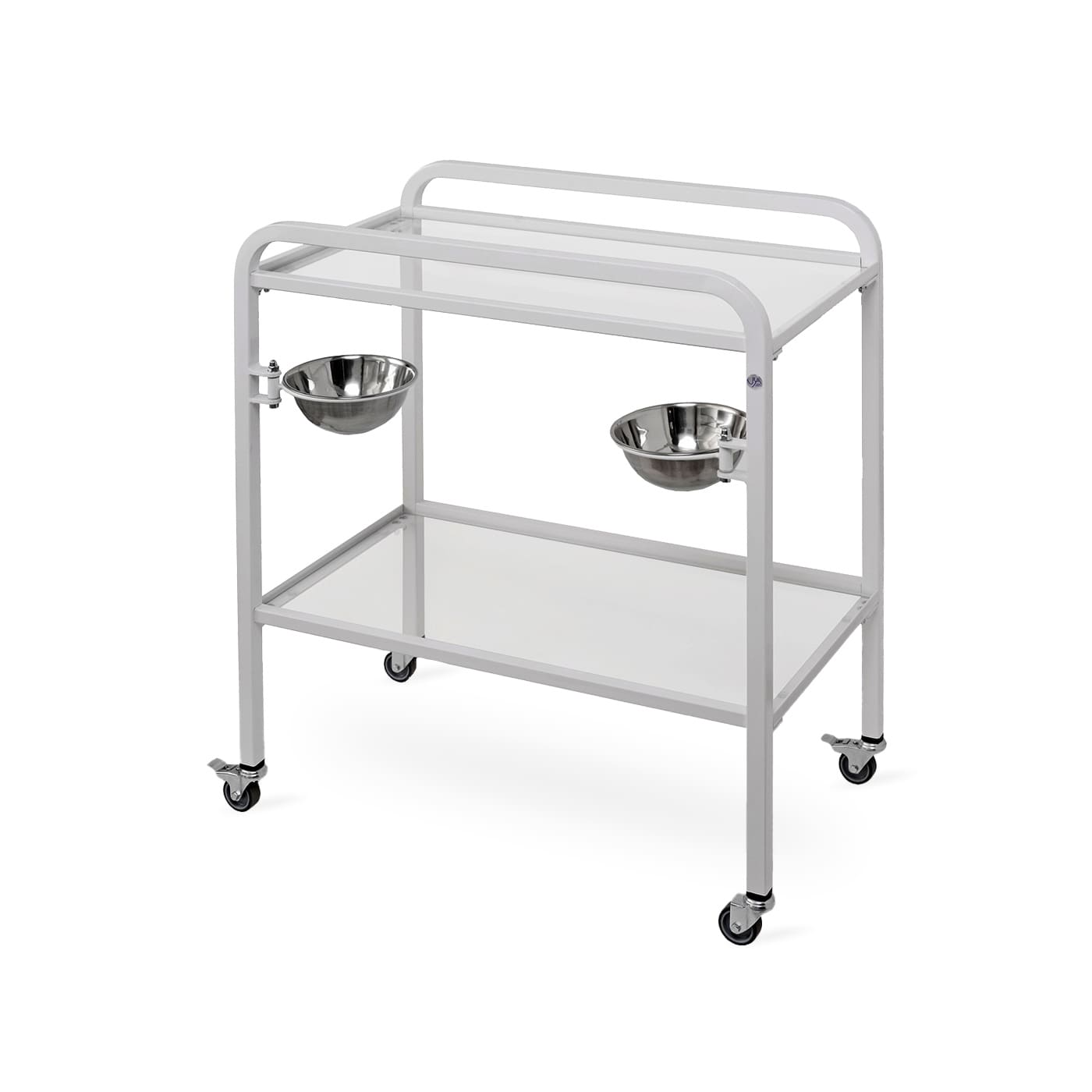 Ošetrovací stôl s nádobami model SZ-M je praktické a funkčné riešenie na použitie v zdravotníckych zariadeniach. Je vybavený kolieskami a rukoväťami, čo umožňuje jednoduchý pohyb po miestnosti. Kolieska sú pohyblivé a majú blokovací mechanizmus, ktorý zabezpečuje stabilitu stola počas ošetrení.