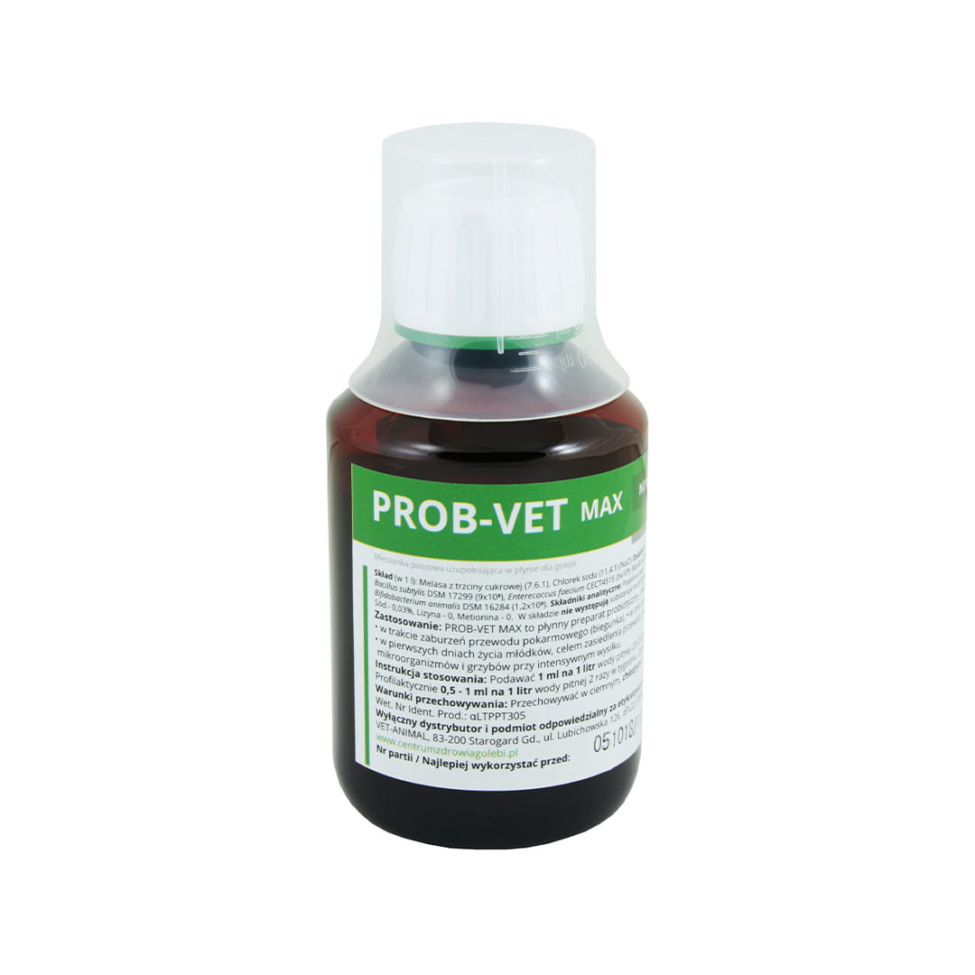 PROB-VET MAX je inovatívne tekuté probiotikum vytvorené na základe najnovších vedeckých a technologických poznatkov. Tento jedinečný prípravok obsahuje pôsobivé množstvo vybraných živých probiotických bakteriálnych kultúr, ktoré podporujú zdravie a kondíciu holubov. Kedy a prečo by sa mal PROB-VET MAX používať?