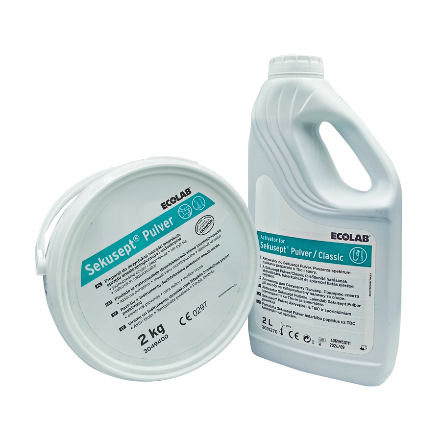 Príprava 2 % roztoku: Na prípravu roztoku použite priloženú odmerku. Obsah účinnej látky v 2 % roztoku na použitie > 600 mg/kg kyseliny peroctovej. Kyselina peroctová sa tvorí počas prípravy roztoku. Na každý liter roztoku pridajte 20 g Sekusept Pulveru a premiešajte. Aby sa zvýšilo spektrum prípravku o Tbc a spóry, malo by sa do každého litra roztoku pridať 20 ml aktivátora, a to po 15 minútach. Pridaním aktivátora sa roztok zmení na modrý.