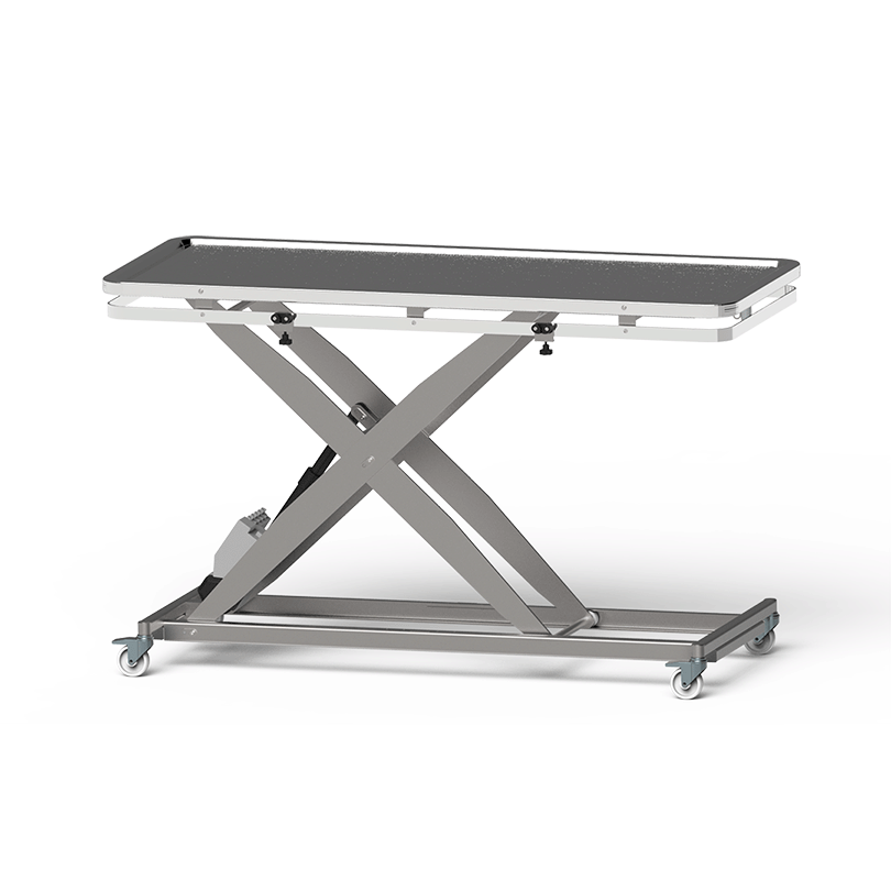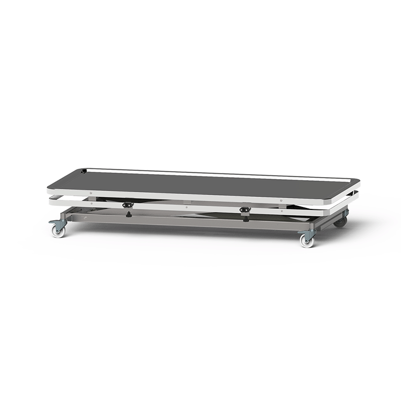 7. Mobilita a nosnosť: Stôl je osadený na stabilnom nožnicovom ráme, ktorý zabezpečuje stabilitu. Základňa je mobilná, čo uľahčuje premiestňovanie stola po zdravotníckom zariadení. Stôl dostal pôsobivú nosnosť 150 kg, čo umožňuje vykonávať rôzne lekárske zákroky.