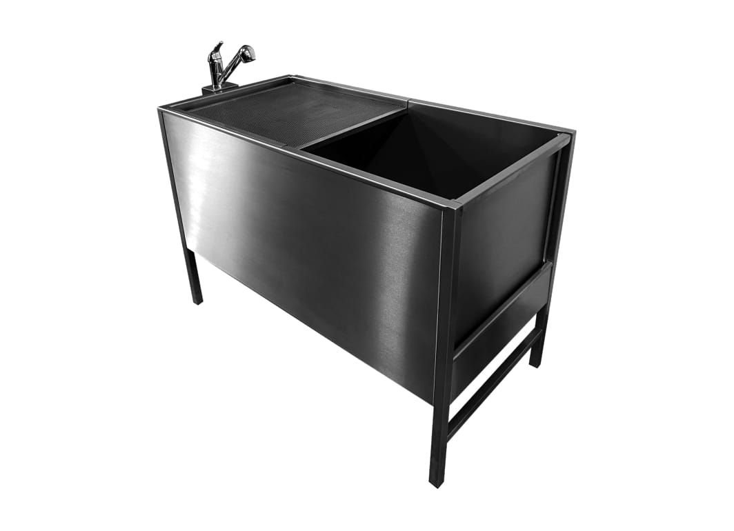 Umývacia vaňa pre stredné a veľké psy vyrobená výhradne z nehrdzavejúcej ocele triedy 304.