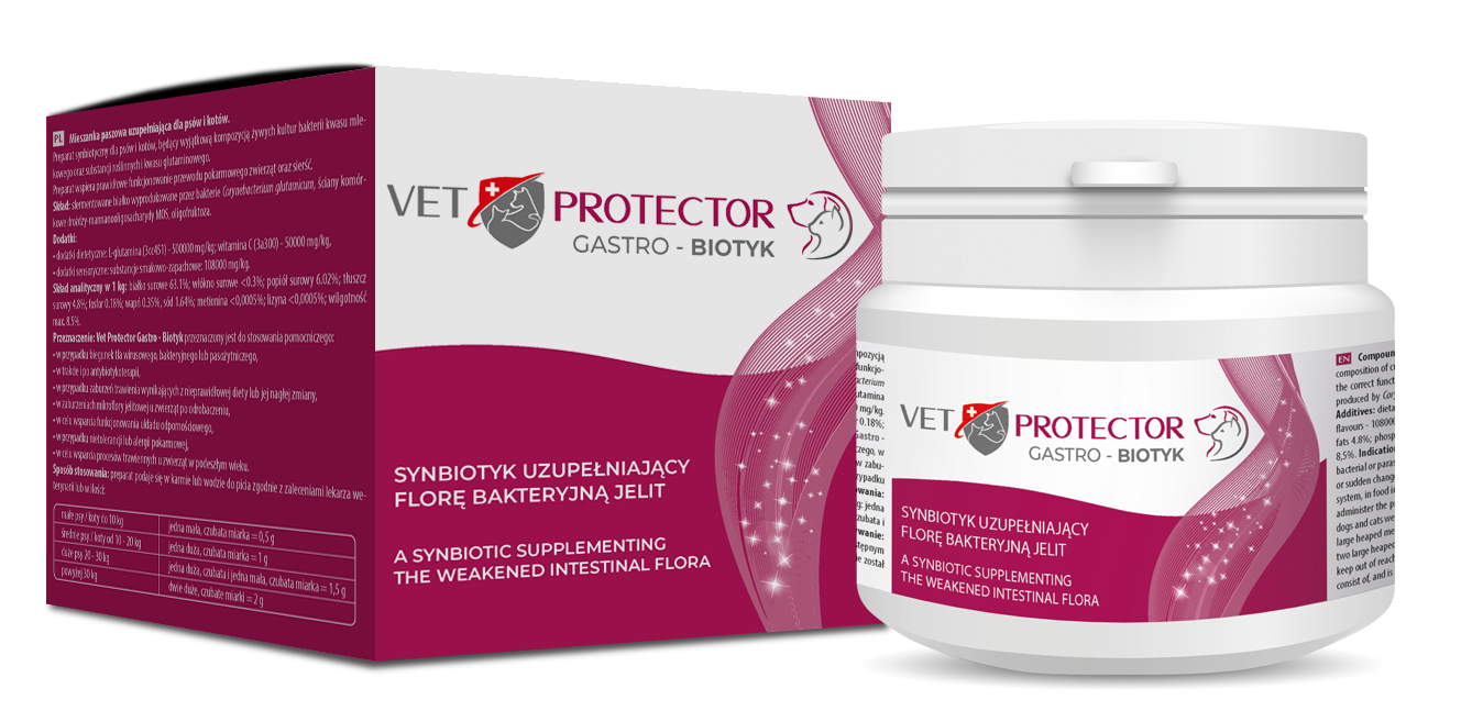 VET PROTECTOR Gastro - Biotics je inovatívny veterinárny prípravok určený na podporu zdravia tráviaceho systému psov a mačiek. Tento moderný výživový doplnok obsahuje jedinečnú kombináciu zložiek, ktoré pomáhajú obnoviť a udržať rovnováhu črevnej mikroflóry a podporujú optimálne trávenie.