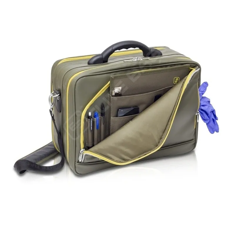 Veľké ploché vrecko a podložka s klipom na dokumenty a priehradka na osobné veci zvyšujú funkčnosť tejto tašky. Umožňujú veterinárnemu lekárovi mať pri návštevách a ošetreniach v poriadku svoje dokumenty a nosiť so sebou nevyhnutné osobné veci.