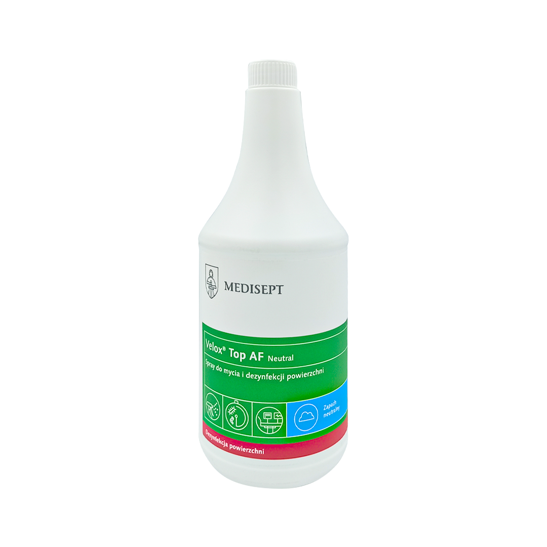 Velox Top AF je profesionálny dezinfekčný prostriedok na povrchy s objemom 1 l, špeciálne vyvinutý pre veterinárov a veterinárne zariadenia. Je to moderný výrobok, ktorý umožňuje účinné a komplexné čistenie a dezinfekciu širokej škály povrchov, zdravotníckeho vybavenia a nástrojov, čo je nevyhnutné na udržanie najvyšších štandardov hygieny a bezpečnosti na miestach, kde sa poskytuje starostlivosť o zvieratá.