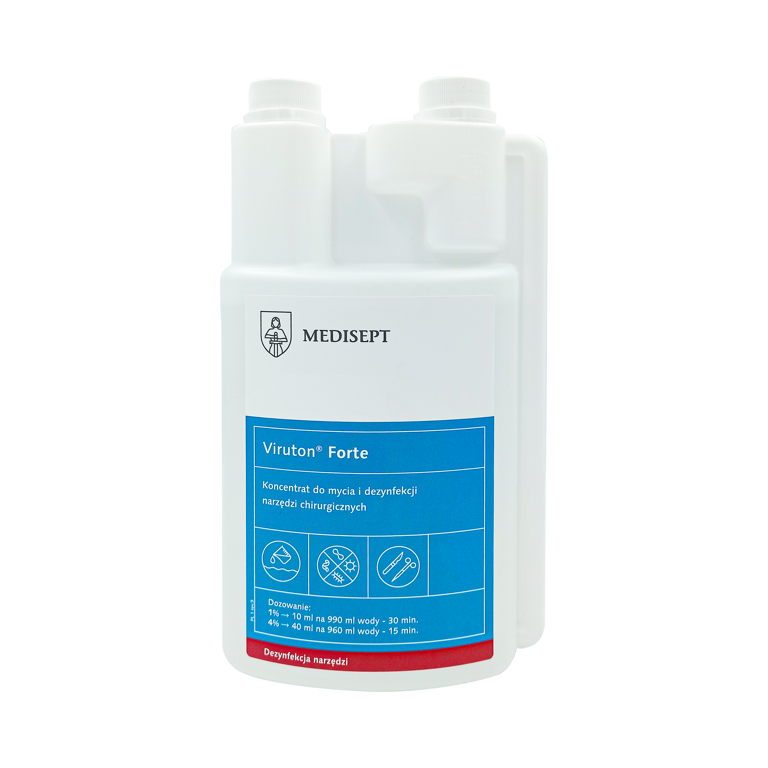 Jednoduché použitie: Výrobok sa ľahko používa - na účinnú dezinfekciu nástrojov a iných predmetov stačí na povrch naniesť správne množstvo prípravku Viruton Forte.