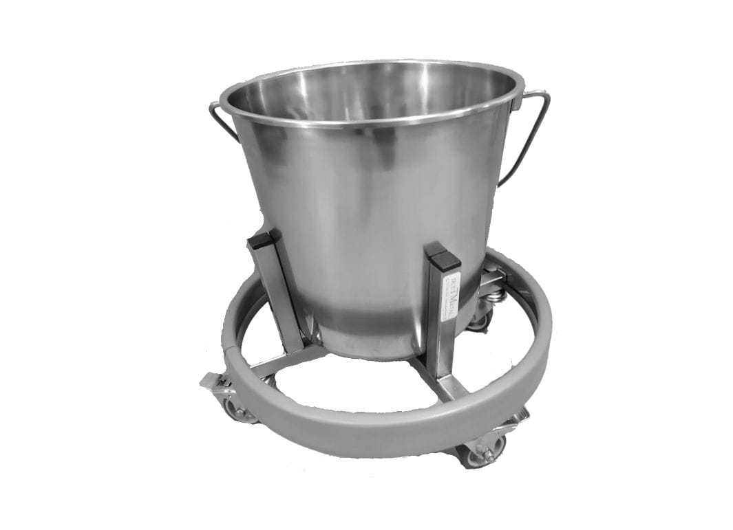 Vozík na zdravotnícky odpad s vedrom z nehrdzavejúcej ocele 304, nevyhnutný napr. pri zákrokoch.