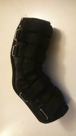 Nižšie je mačka s neprirodzeným obrovským predkolením členkového kĺbu. Pomocou stabilizovanej ortézy sme dosiahli fyziologické uhlovanie kĺbu, čo zvieraťu výrazne uľahčilo pohyb.