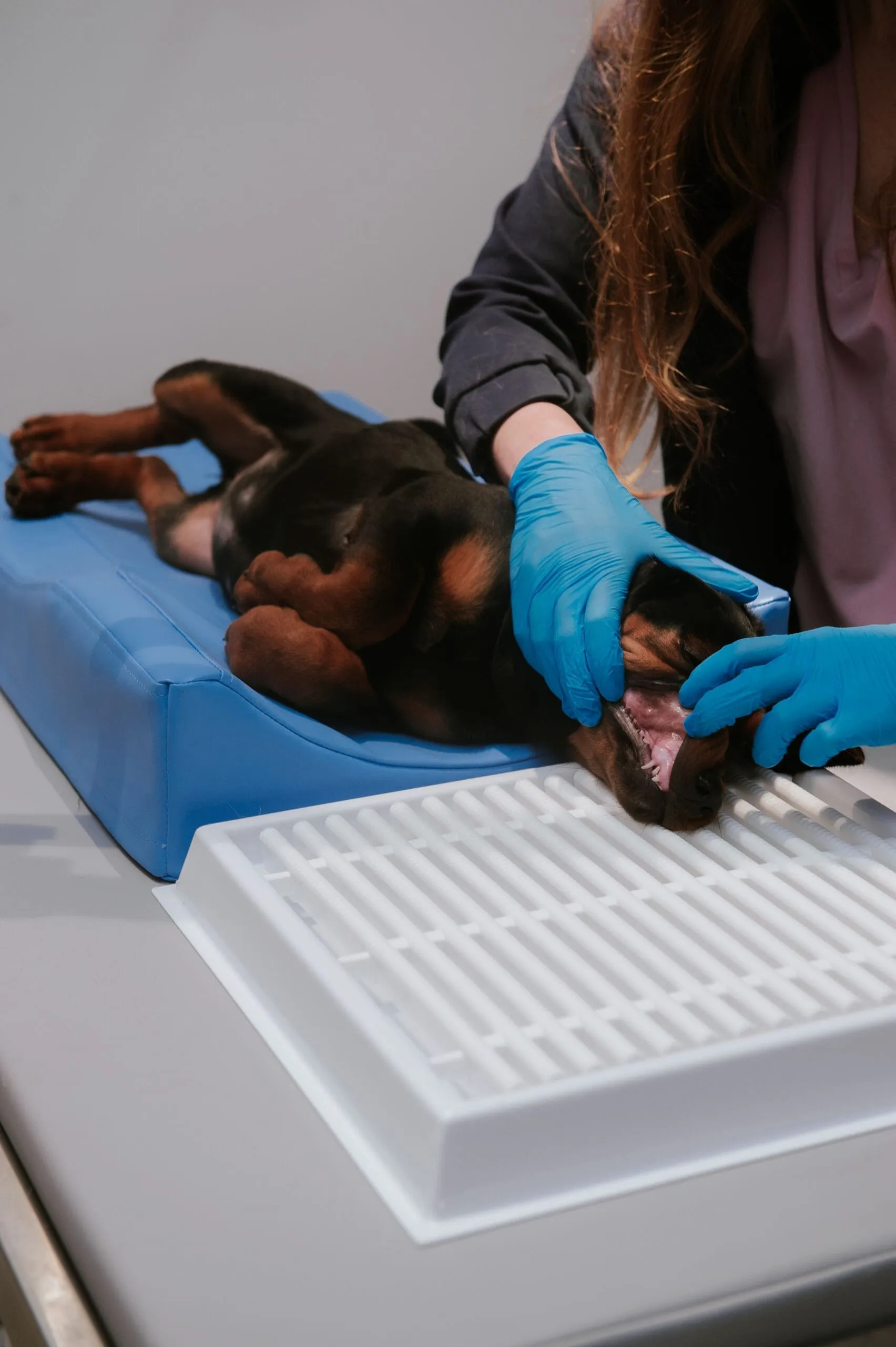 Súprava pozostávajúca zo zubného polohovadla a zubnej drenáže je ideálna pre veterinárne ordinácie, ktoré vykonávajú zubné zákroky na stredne veľkých psoch a mačkách.